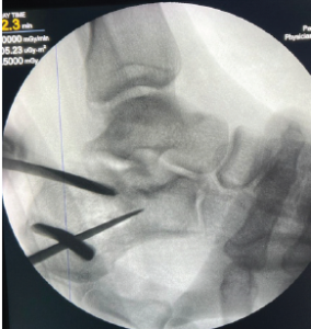 The arthroscopic-assisted percutaneous fixation technique involves a combination of endoscopic visualization and minimally invasive hardware placement. Patients are positioned supine, with the affected limb elevated to facilitate access to the lateral side of the foot. Regional or general anesthesia is typically used [7].