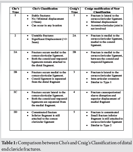 6. Dodia AV, Dodia PA, Dodia A, Shah P. Outcomes of fractures of lateral end of clavicle using different modalities of management. 2017; Available from: https://www.ijos.co.in/journal-article-file/3827