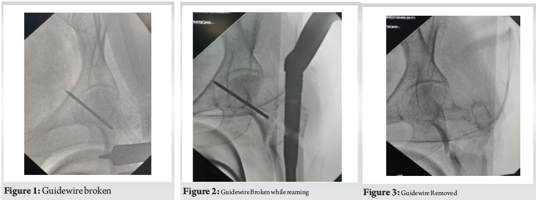 How to Cite this article: Kale S, Vatkar A, Srivastava S, Bhati A, Vyas A, Shyam A | Intraoperative Guide Wire Breakage during Intertrochanteric Fracture Fixation: A Technical Complication and Management Strategy | Journal of Orthopaedic Complications | May-August 2025;2(2):08-10. |
